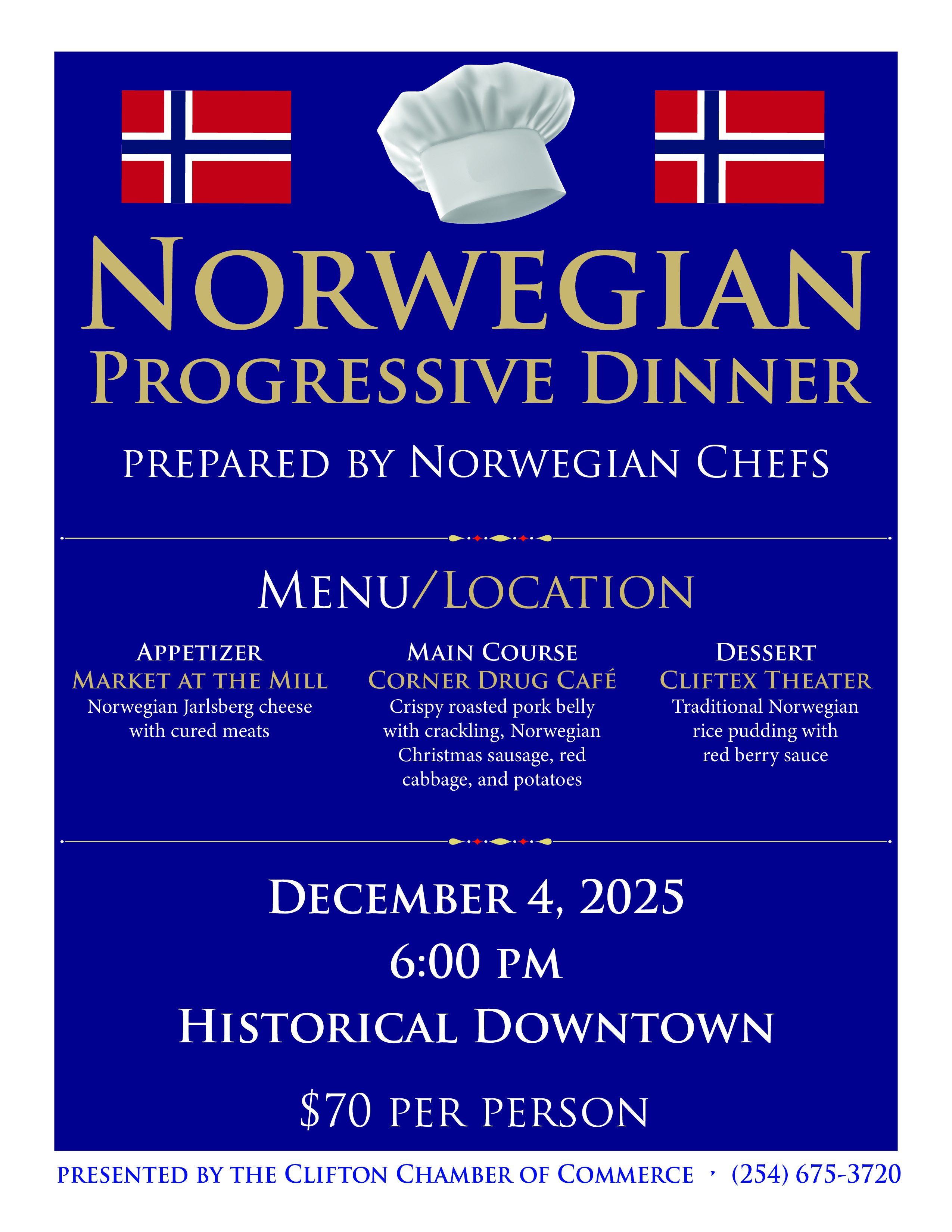 Contact Clifton Chamber of Commerce at (254) 675-3720 for tickets and additional information.